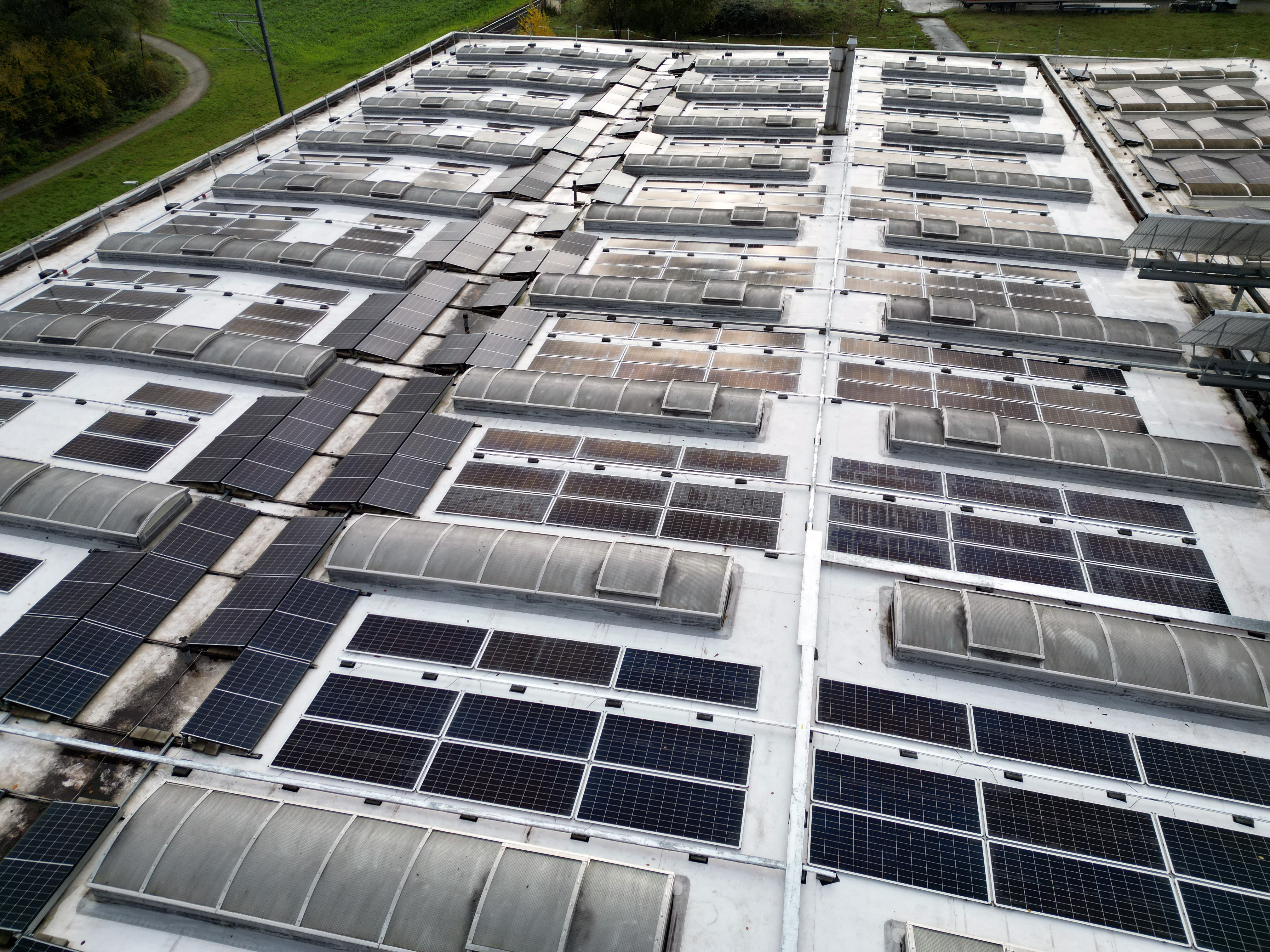 Bei Swisspearl in Niederurnen wurde die bestehende 3,3-MWp-Anlage um weitere 2,3 MWp erweitert und gleichzeitig in die bestehenden PV-Systeme integriert. Damit erreicht die Gesamtanlage eine Leistung von 5,8 MWp. Im Zuge der Dachsanierungen wurden die Flächen direkt mit PV-Modulen belegt. Zusätzlich werden aktuell Abklärungen getroffen, um überschüssigen Solarstrom mittels Batterie lokal zu nutzen und für Systemdienstleistungen einzusetzen.